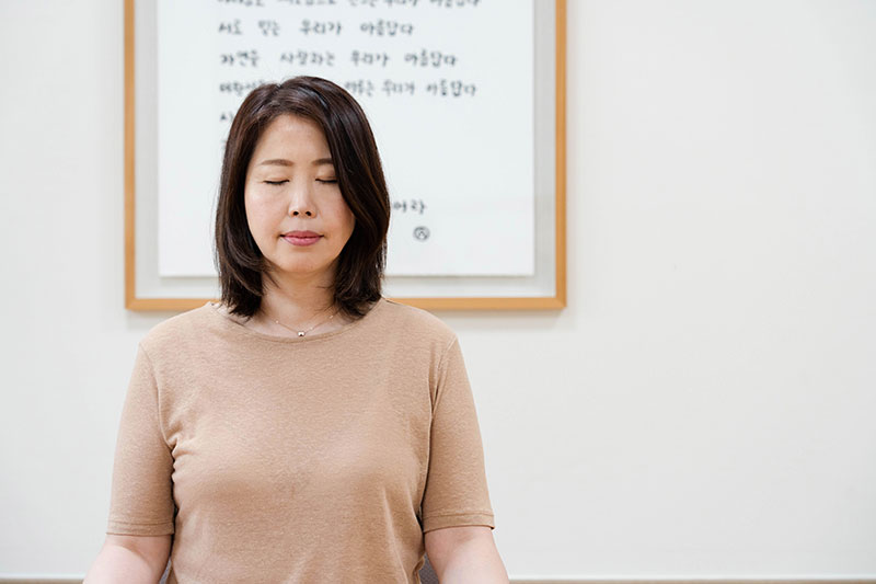 호흡명상을 하는 여자 모습